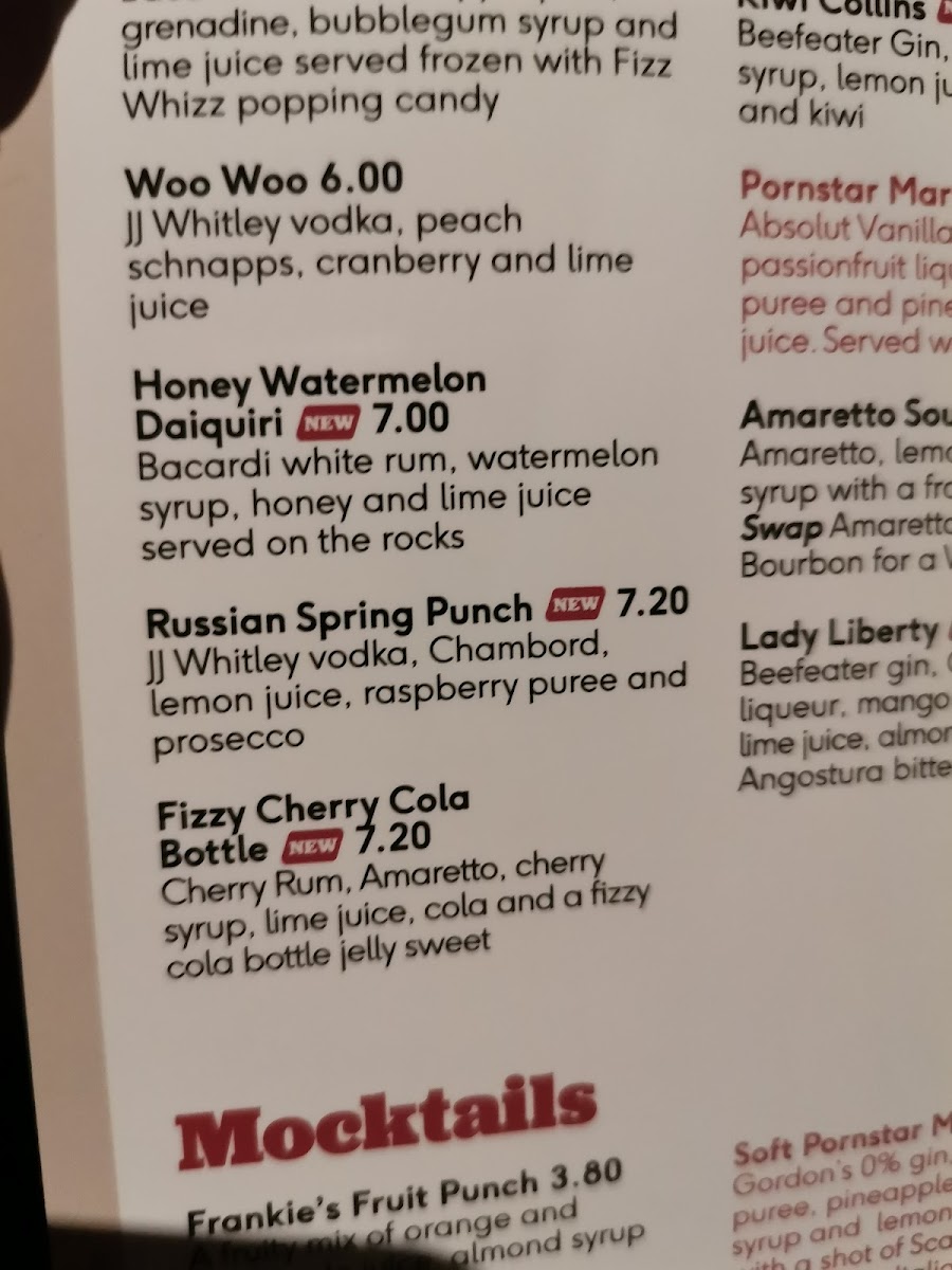 Not to be overlooked, their breakfast selection is tantalizing, featuring dishes like the savory Mushroom & Cherry Tomato Hash (£10.95) and the hearty Beef Brisket Hash (£11.95). Make sure to pair your meal with one of their refreshing mocktails, such as the vibrant Frankie's Fruit Punch, to round out the experience.